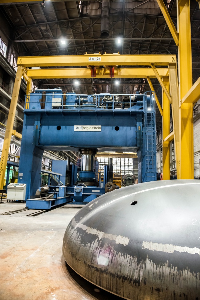 Мощности кузнечно-прессового оборудования позволяют изготавливать качественные днища больших диаметров и толщин, элементы сферических днищ, элементы шаровых резервуаров и прочих деталей и изделий.