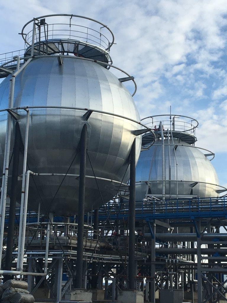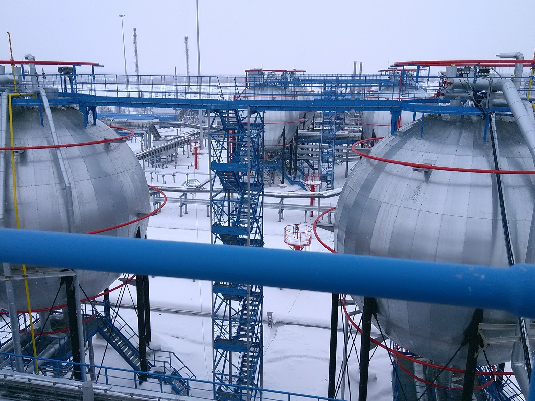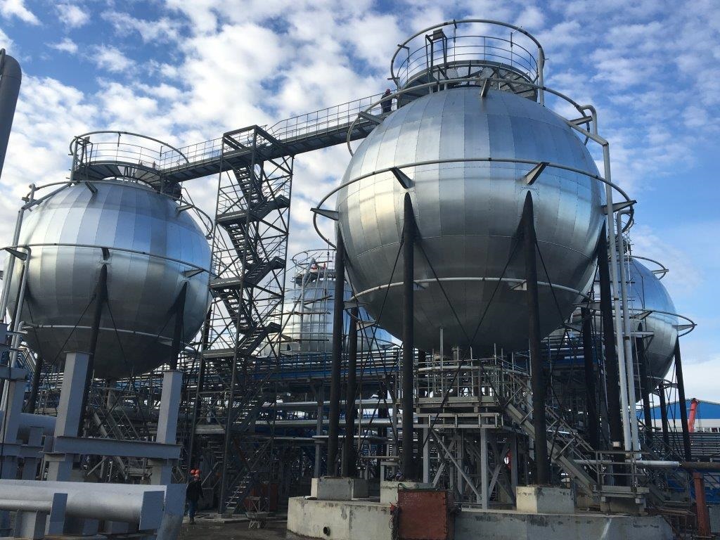 Шаровые резервуары объемом 600 м3 для хранения деэтанизированного конденсата на Уренгойском ЗПКТ, 2-я очередь (Газпром).