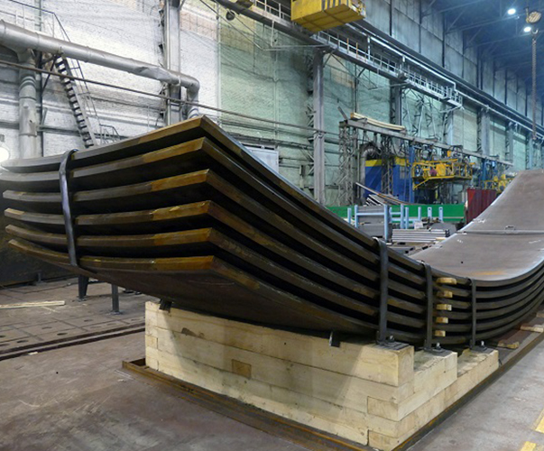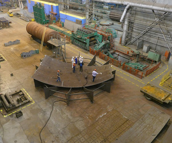 Шаровые резервуары по индивидуальным проектам выпускаем емкостью от 100 до 8000 м3. Для их производства используется универсальный комплекс – пресс «Schleifstein» (Германия). На нем элементы оболочки резервуаров изготавливаются с применением технологии холодной точечной деформации.