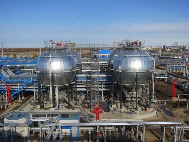 Шаровые резервуары объемом 600 м3 для хранения деэтанизированного конденсата на Уренгойском ЗПКТ, 2-я очередь (Газпром).